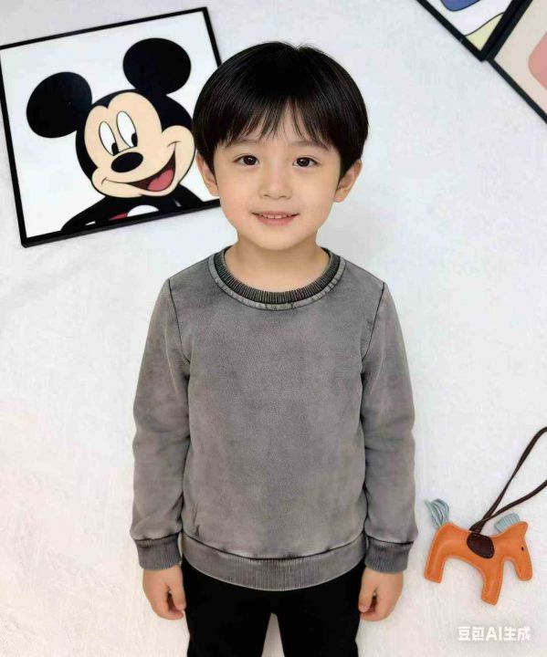 童装水洗做旧不规则超柔软毛圈圆领百搭舒适男女儿童卫衣