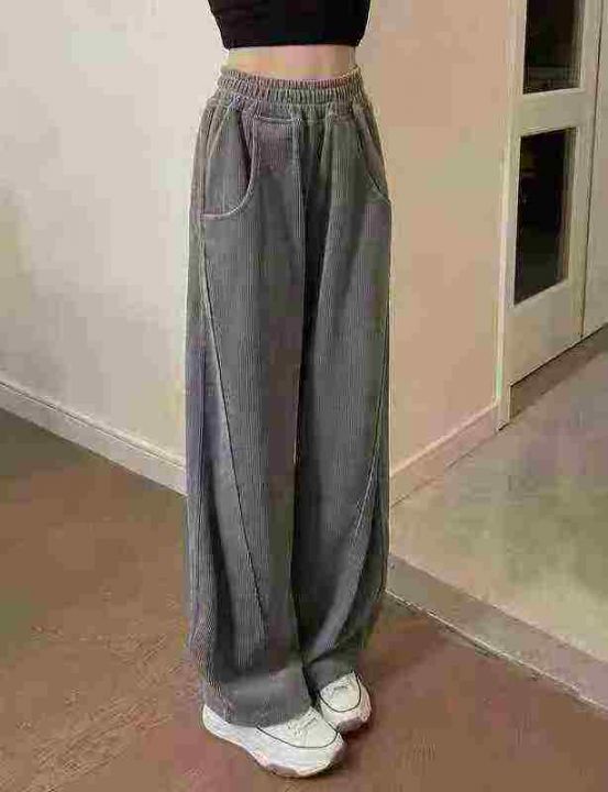 美式复古运动裤女高腰显瘦窄版阔腿裤卫裤休闲裤