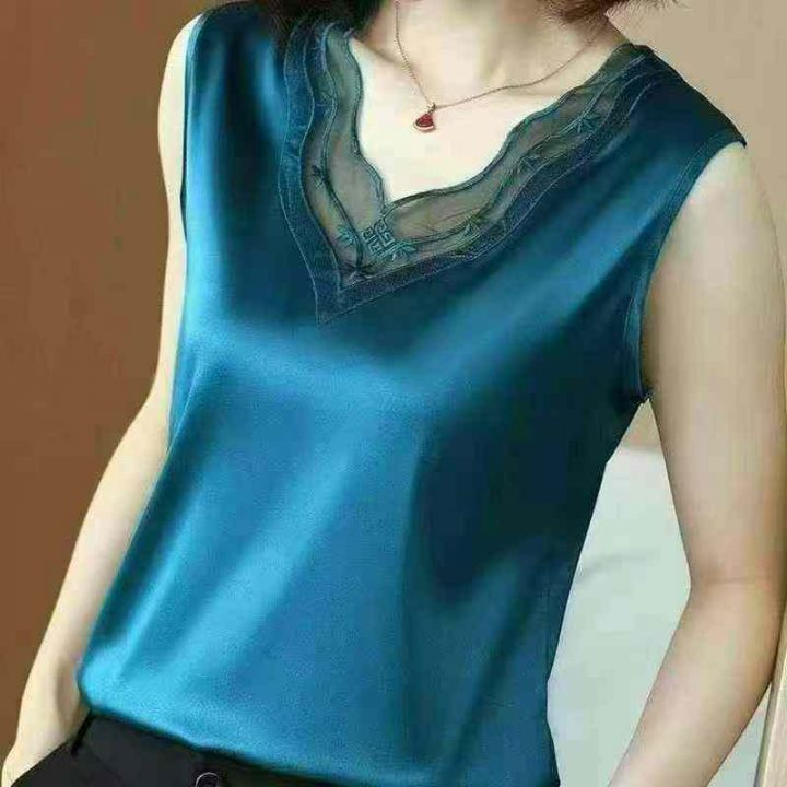夏季高级感背心女装蕾丝百搭大码显瘦纯色绸缎吊带上衣打底衫,白色不到 50 ...