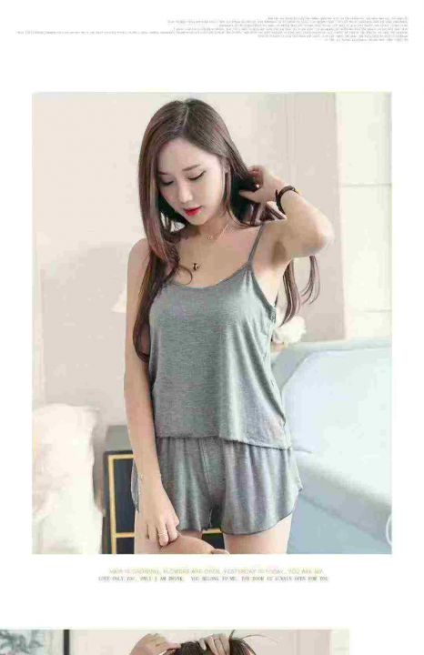 夏季性感吊带短裤女薄款睡衣两件套大码春秋家居服套装...