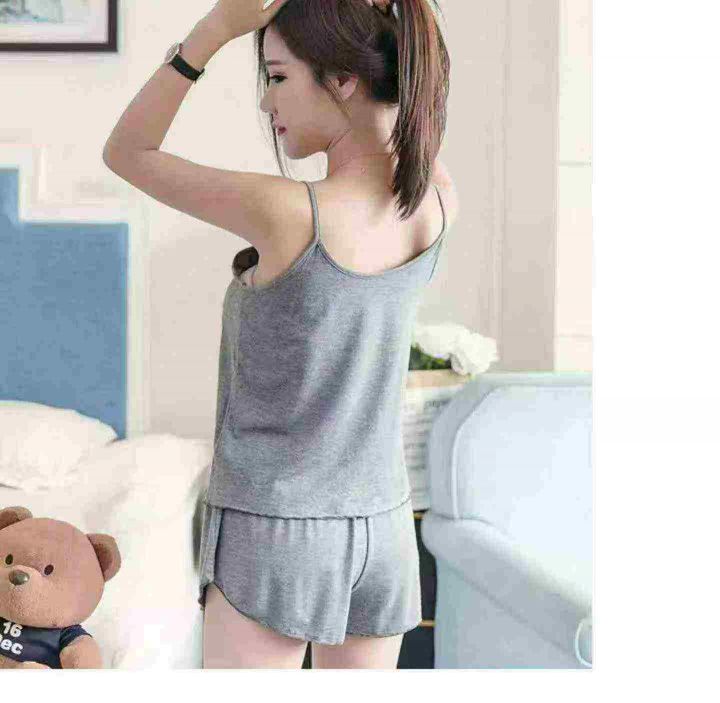 夏季性感吊带短裤女薄款睡衣两件套大码春秋家居服套装