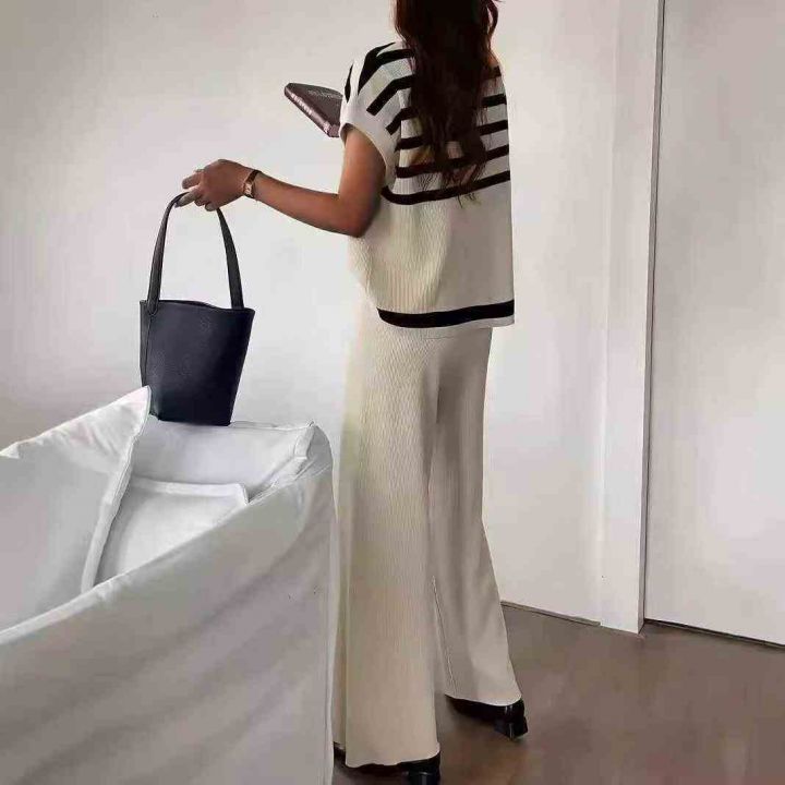 全清14.8分货+1,外贸简约高级感时髦小众条纹针织坎肩上衣+时尚修身阔腿裤女,数量20套,码数S-M,独立包装