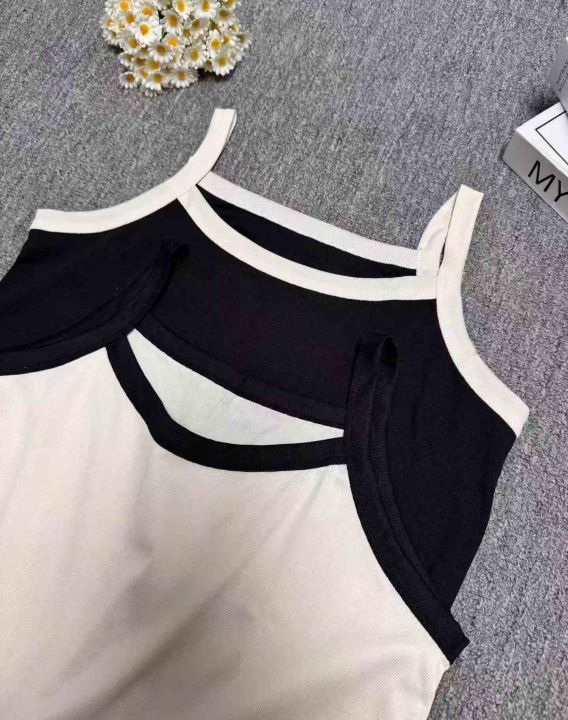 大码辣妹风无袖法式叉色吊带小衫,整款两色,高弹力,...