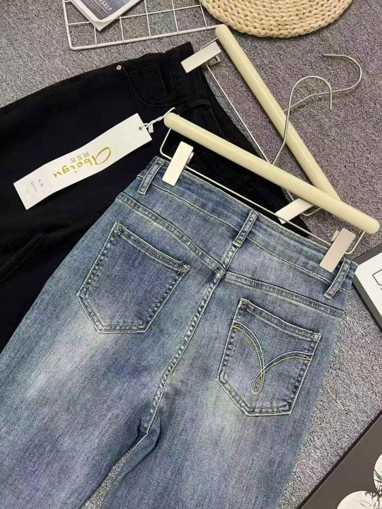 ☕️弹力牛仔裤女薄款破洞乞丐九分裤直筒裤高腰显瘦微喇裤24条全清9.8元,码数S到4XL,正品独立包装,单款2色[庆祝][庆祝][庆祝]