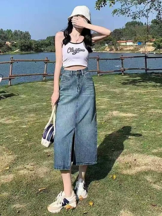 ☕️高腰开叉牛仔裙女春夏新款设计感中长款遮胯包臀a...