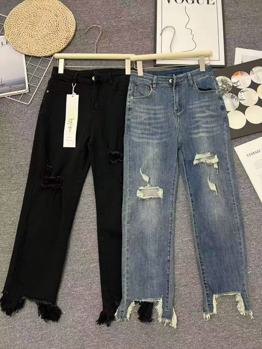 ☕️弹力牛仔裤女薄款破洞乞丐九分裤直筒裤高腰显瘦微喇裤24条全清9.8元,码数S到4XL,正品独立包装,单款2色[庆祝][庆祝][庆祝]