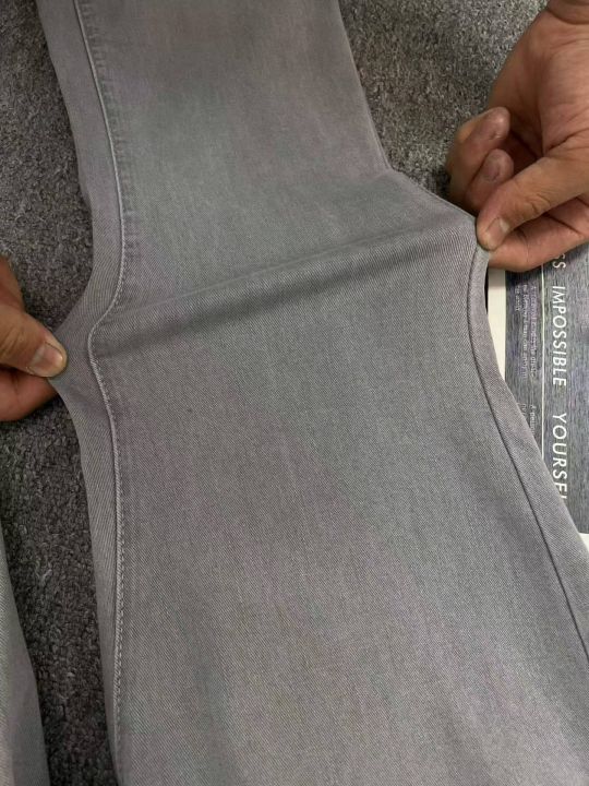 ☕️弹力烟灰色高腰微喇叭牛仔裤新款紧身毛边喇叭显瘦...
