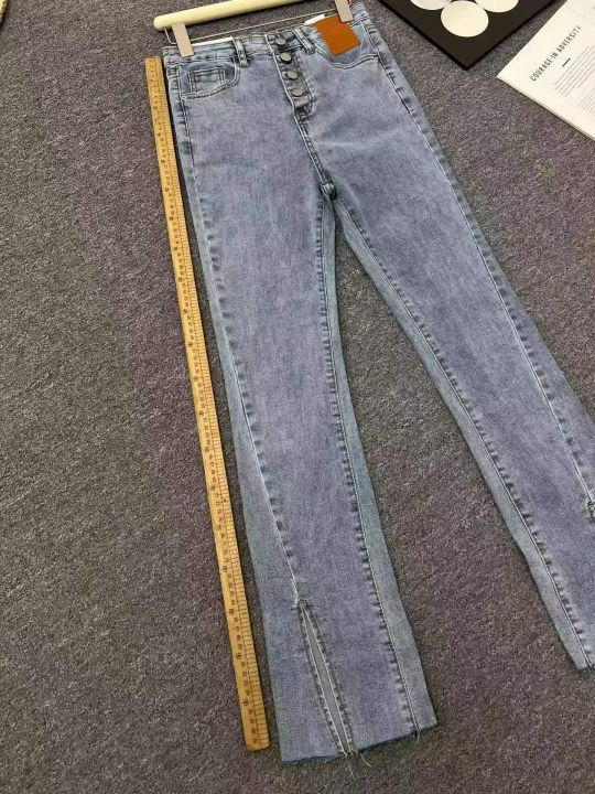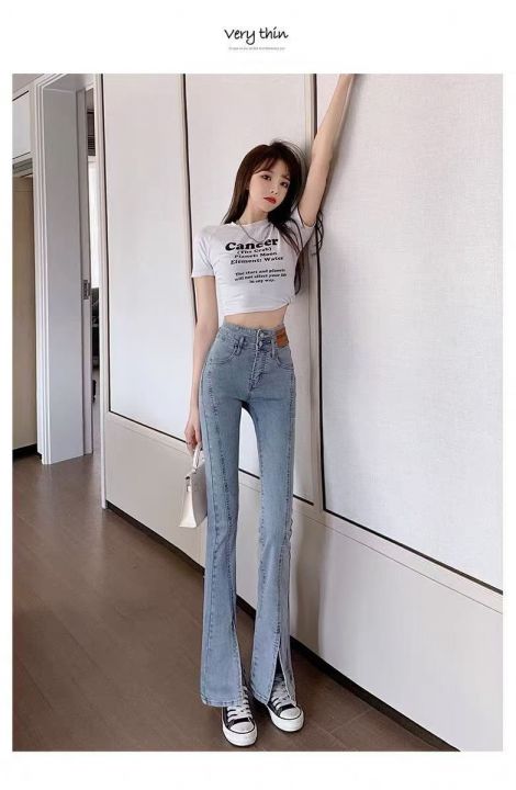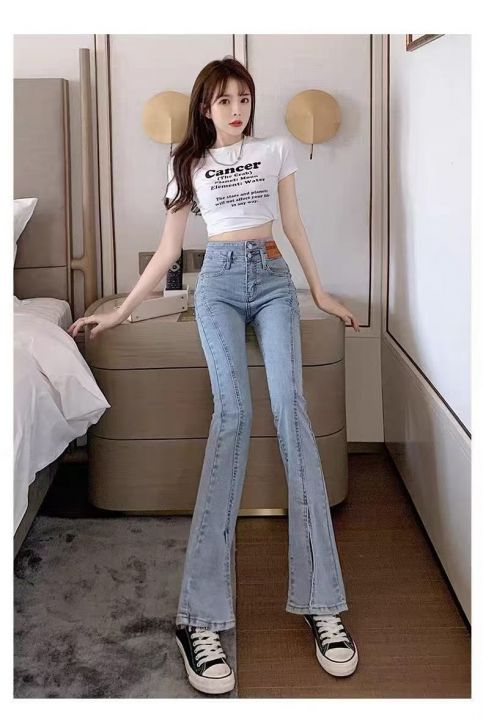 ☕️弹力开叉牛仔裤女高腰紧身显瘦拖地微喇叭裤226条...