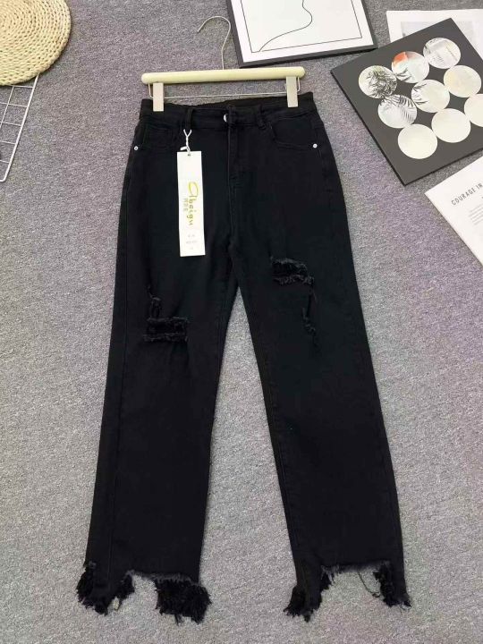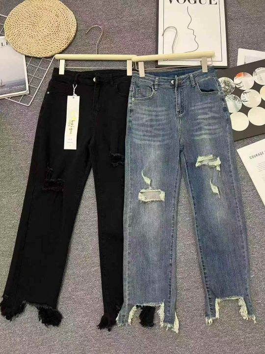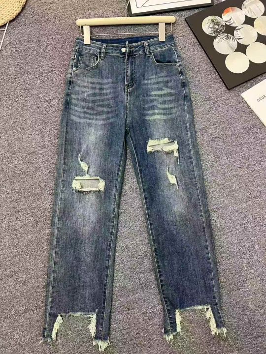 ☕️弹力牛仔裤女薄款破洞乞丐九分裤直筒裤高腰显瘦微喇裤24条全清9.8元,码数S到4XL,正品独立包装,单款2色[庆祝][庆祝][庆祝]