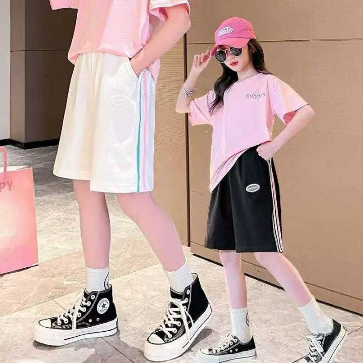 全清价6.8中大童男女童三条杠休闲运动五分裤,独立包...