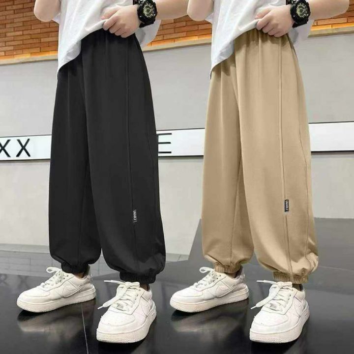 夏季热卖中大童男女同款冰丝休闲束脚运动裤,独立包装,整款三色,面料做工,码数130-170,数量1067条,分货加1,(K82)
