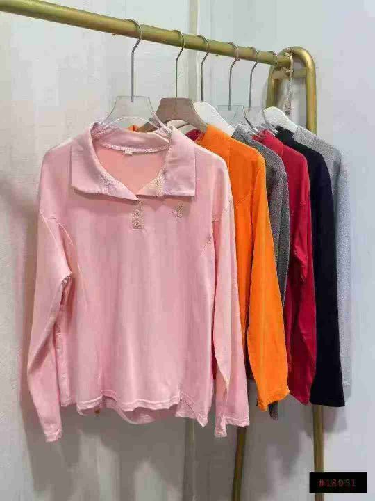 春秋新款洋气减龄百搭翻领POLO上衣简约设计感纯色长袖t恤衫,数量1740件,码数s-2xl,独立包装,全清4.8元