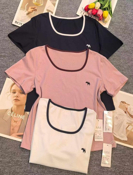 腾仓库捡漏:5.8一件品牌纯棉撞色刺绣圆领修身显瘦短...