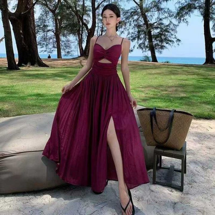 法式扭结设计感镂空褶皱收腰开叉吊带长裙,[爱心]85件左右,款号#6464,码数S-4XL,穿80-150斤,万佳档口货,原包装️无瑕疵,[666]实体店品质