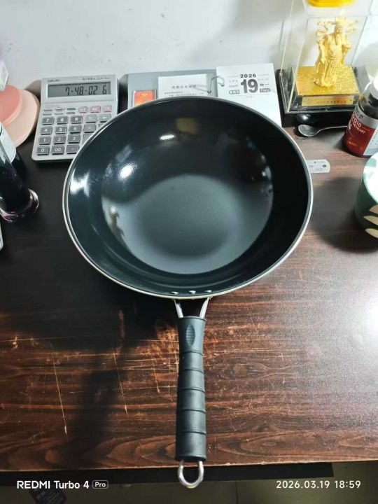 455个防烫塑胶柄炒锅450个,锅体直径32cm,高度8.5厘米,连柄长度50cm。3...