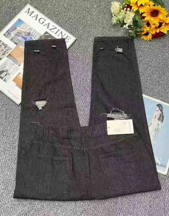 春夏季新款网红复古洗水棉破洞牛仔直筒阔腿裤,独立包装带腰卡,码数XS--2X...