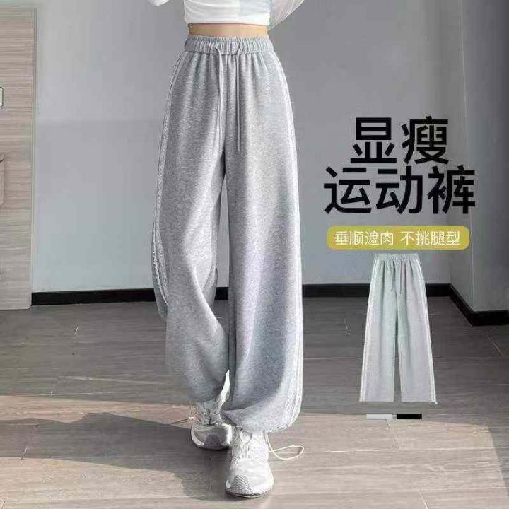 春季新款季网红复古直筒束脚2穿纯棉花边阔腿休闲卫裤...