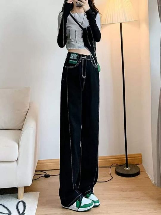 捡漏款,春季新款网红复古微胖MM洗水棉设计款直筒阔腿...