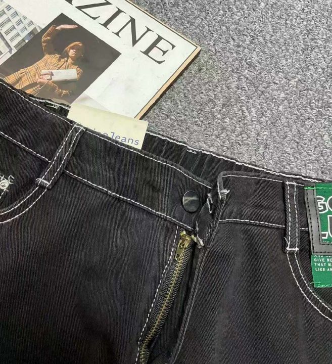 捡漏款,春季新款网红复古微胖MM洗水棉设计款直筒阔腿牛仔裤,独立包装带腰卡,码数32码(可穿120--160斤左右),75件,全清10.8元超低价秒杀!