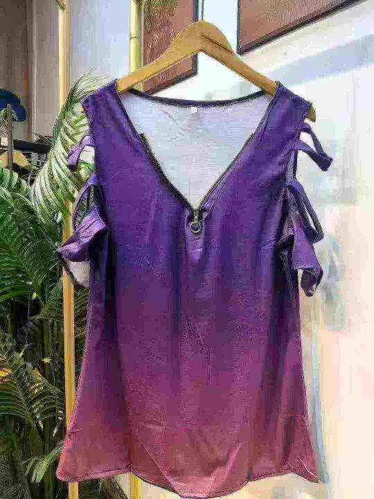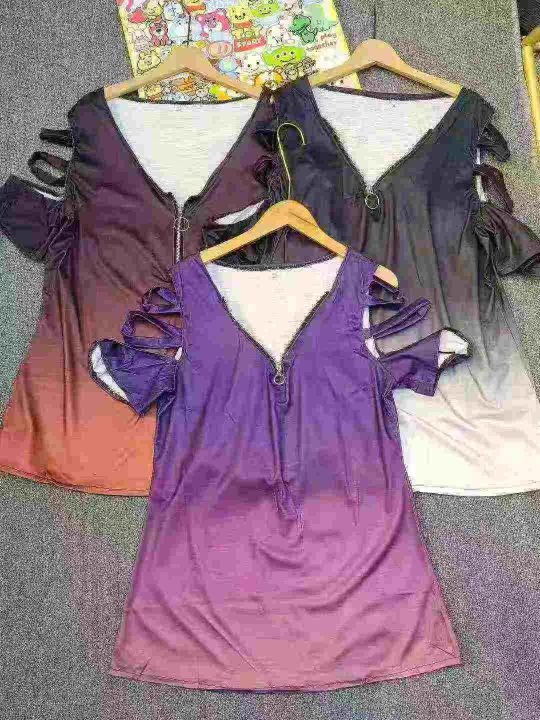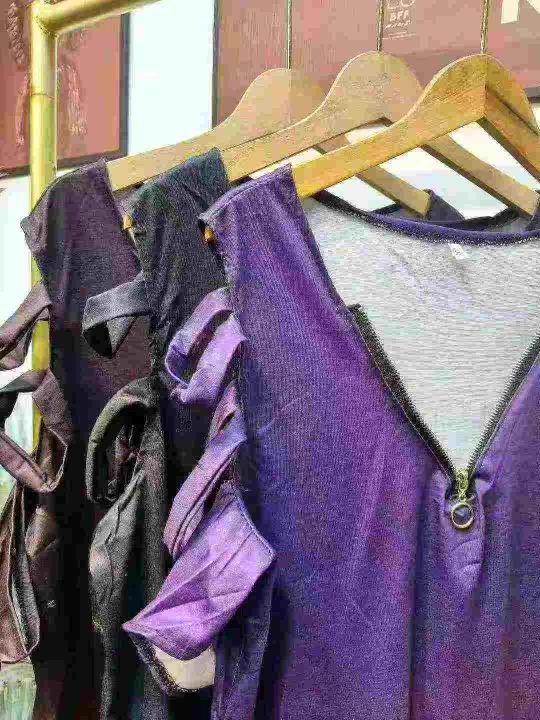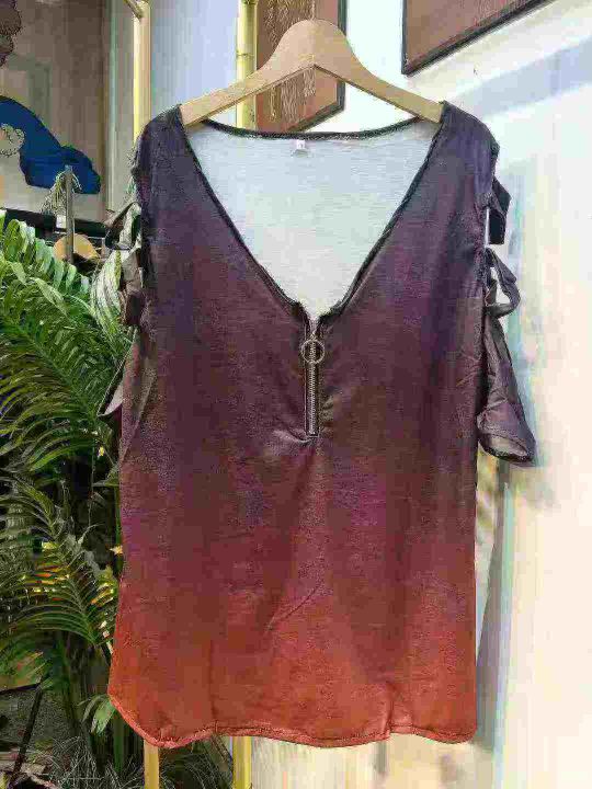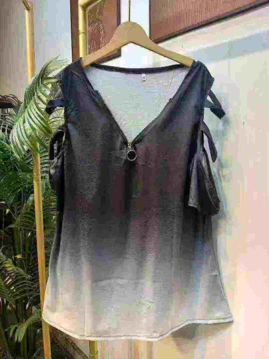 220件半拉链V领露肩仿棉T恤上衣 单款三色,码数S-4XL码 独立包装。