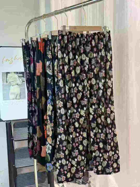 10000条\'妈妈冰丝长裤女宽松加大加肥休闲奶奶花裤子中老年阔腿裤,多色,均码,100/200起+0.5,货号001#30