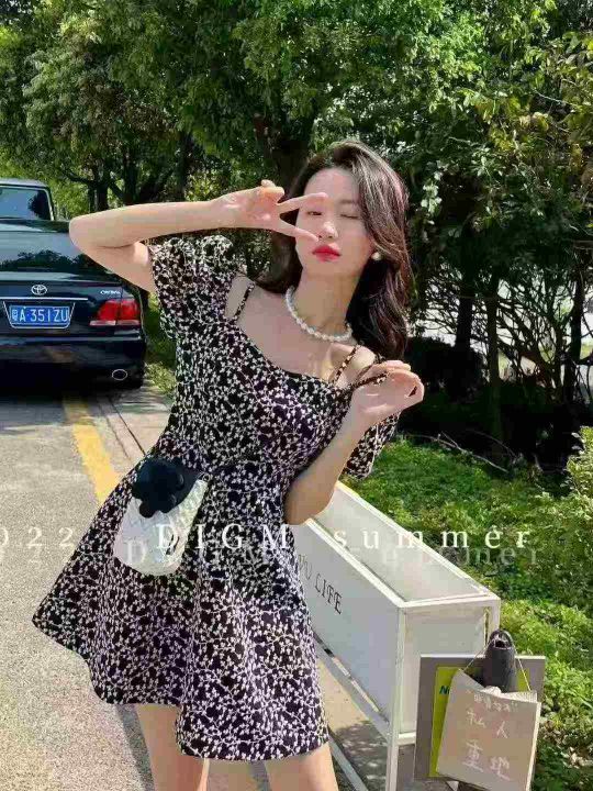绣花泡泡袖连衣裙143件8.5,一字领,有内衬,侧腰拉链...