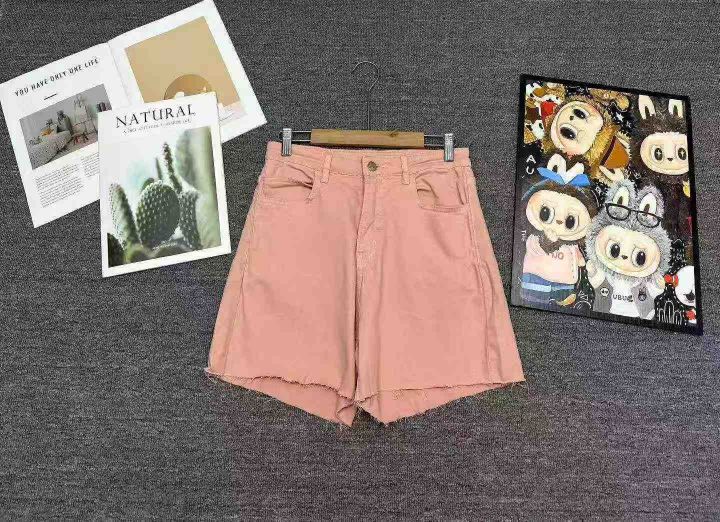 天猫在售款128件左右高品质女装高腰显瘦粉色系牛仔短裤,面料柔软高弹力,单款单色,S-XL,独立包装