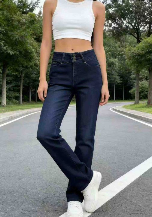 春季新款高弹力品牌外贸原单美式宽松多扣直筒牛仔裤,...