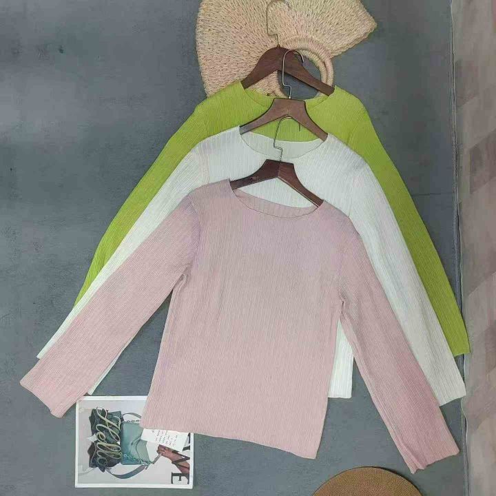 3.5元全清,女士螺纹新款圆领长袖T恤宽松打底百搭短袖...