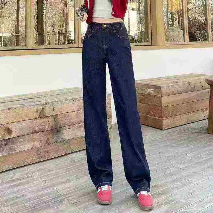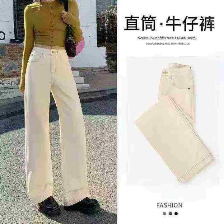 新款宽松百搭显瘦高腰窄版女款直筒裤子,整款2色(杏色...