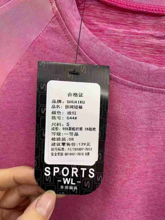 1400件运动健身拼结网纱速干瑜珈短袖。面料柔软舒适,高弹力,品质好。S 一2XL,独立包装带吊牌,全清3.5