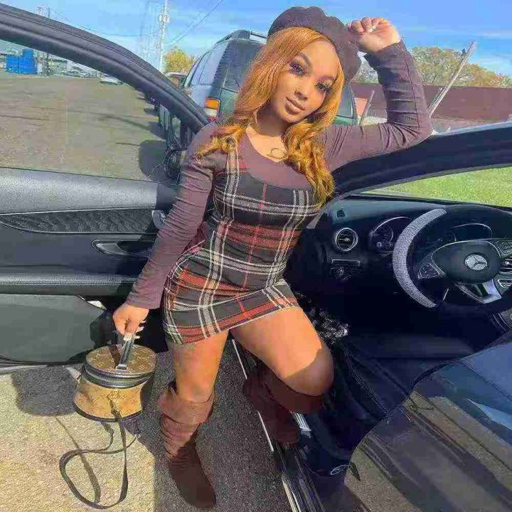 欧美时尚女装短裙格子印花休闲圆领连衣裙 ,整款两色,数量:223件,码数:S-XL,品质好,拉链式独立包装。