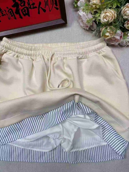 慵懒风杏色假两件设计感女士A字短裙.单款单色带短裤· 质量做工非常好.50件独立包装全清5.8