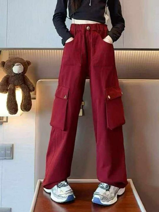 全清价11.8女中大童宽松潮牌多口袋休闲裤春运动棉工装裤,独立包装,酒红色...