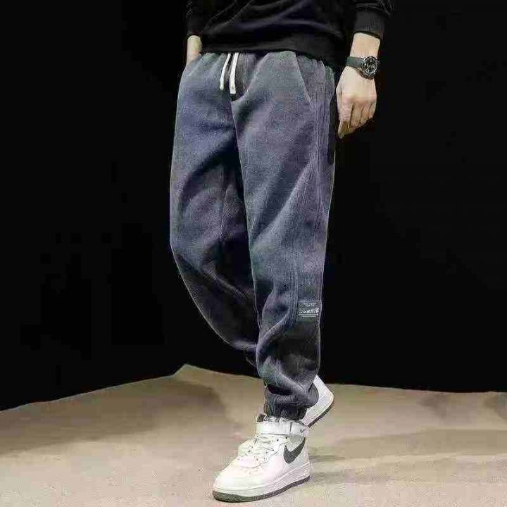 灯芯绒港风长裤男潮流宽松哈伦裤百搭运动休闲束脚裤,三个整款,前后设置有...