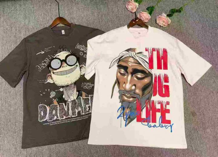 潮牌男士重磅高克重纯棉T桖大面积印花图案3000件,独...