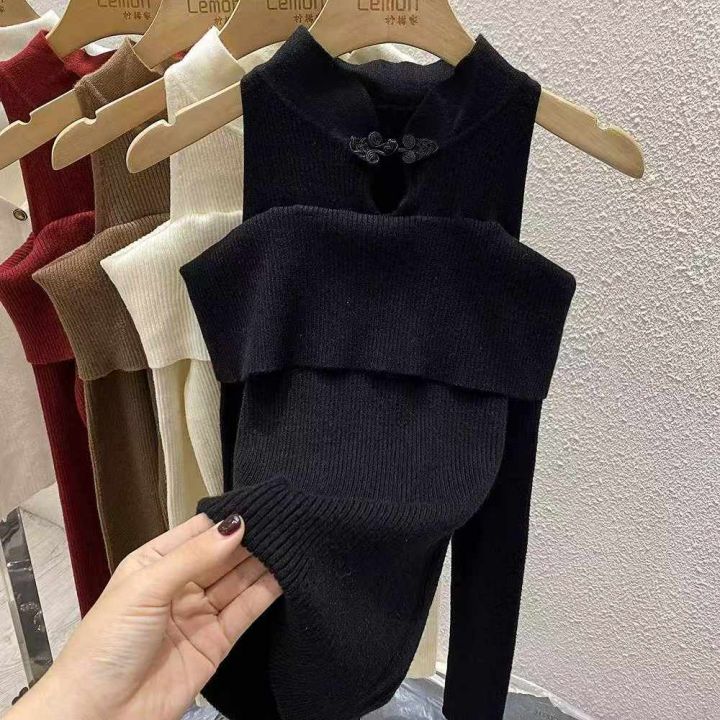 春季新款气质国风新中式挂脖盘扣露肩镂空设计款长袖套头毛衣,独立包装,均码面料柔软舒适弹力大,610件,全清5.9元超低价秒杀!分货加一!