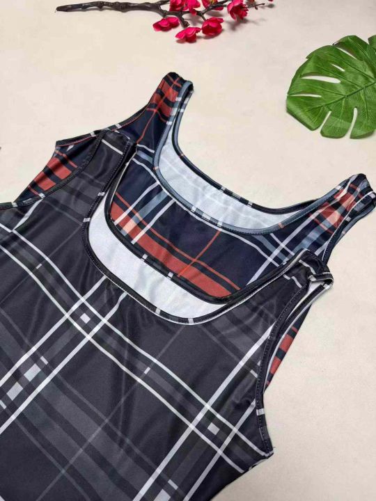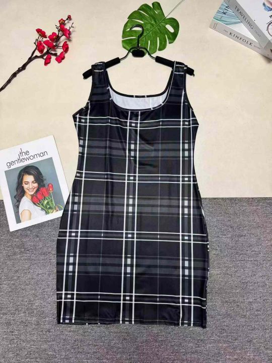 6.8清款号:6026#欧美时尚女装短裙格子印花休闲圆领连...