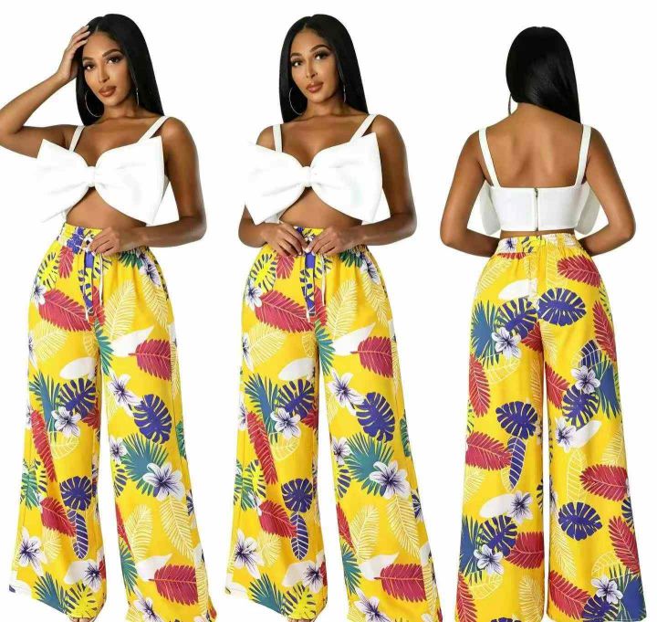 新款欧美时尚印花休闲系带直筒宽松阔腿裤,整款三色,数量:147条,码数S至2xL,品质好,拉链式独立包装。
