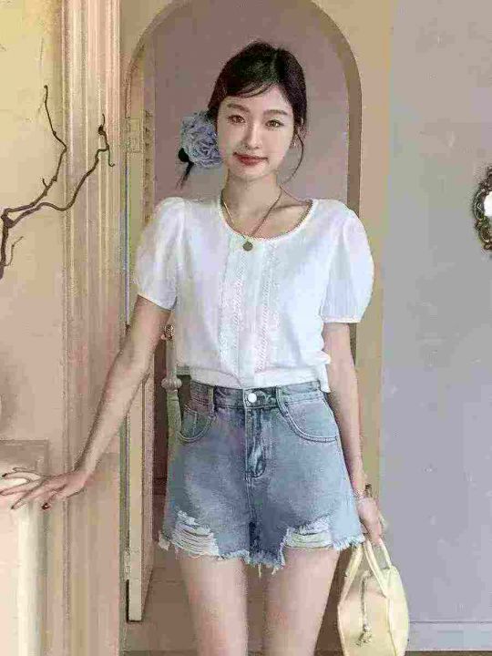 清8.8牛仔短裤女高腰夏季2025年新款显瘦辣妹破洞裤,...