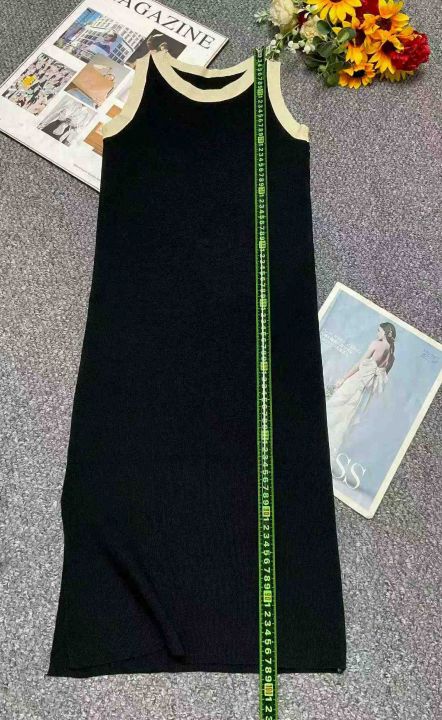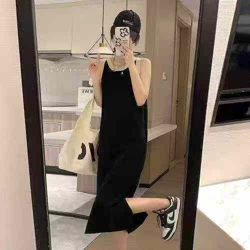夏季新款韩系撞色冰丝针织背心连衣裙,独立包装,均码...