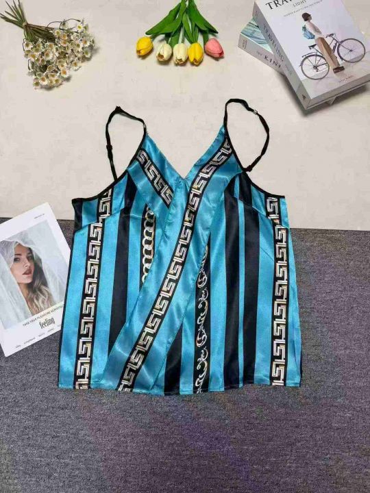 V领缎面印花吊带夏季新款内搭背心小吊带,品质好,数...