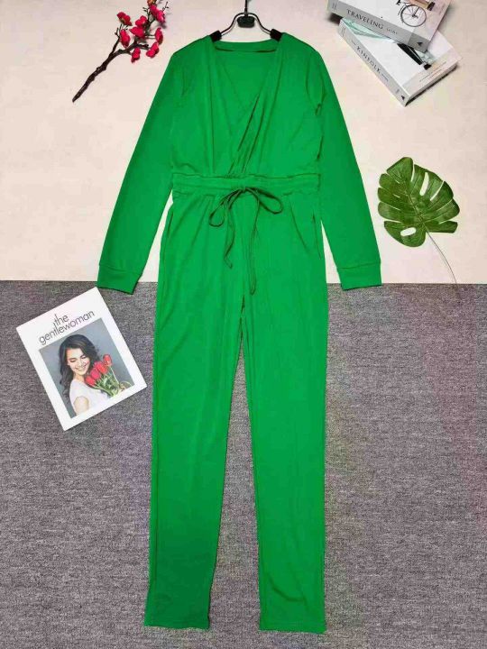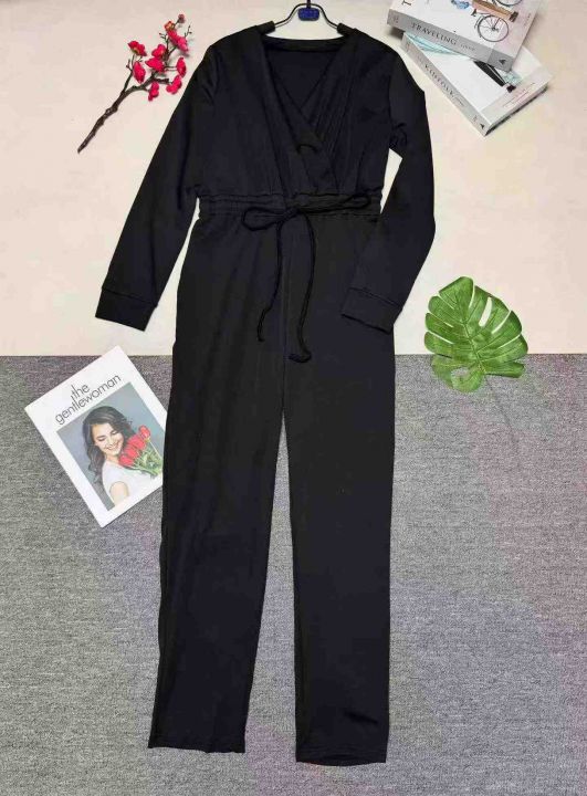 欧美时尚女装纯色V领抽绳时尚秋冬连体衣,整款三色,数量:432件,码数:S-2XL,品质好,拉链式独立包装。