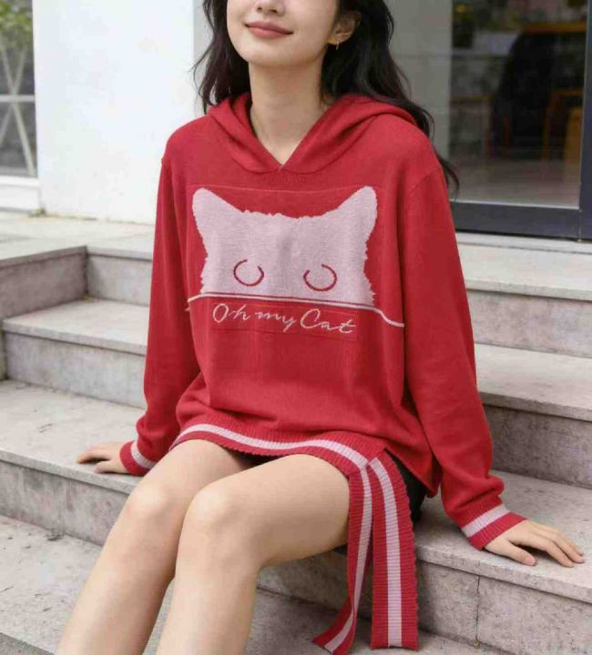 春秋季新款品牌原单设计款卡通提花宽松连帽针织套头毛衣,独立包装带吊牌,均码面料柔软舒适有弹力,512件,全清6.9元超低价秒杀!分货加一!