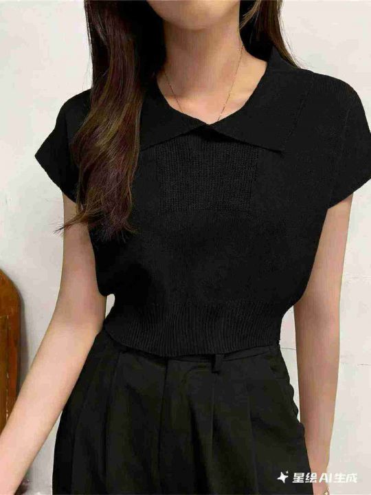 夏季新款美拉德色系Polo领薄款针织短袖T桖,独立包装...