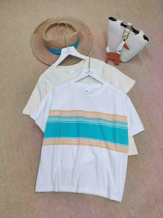 [月亮]:7.5清256件[月亮]:简约条纹拼色休闲纯棉包边...
