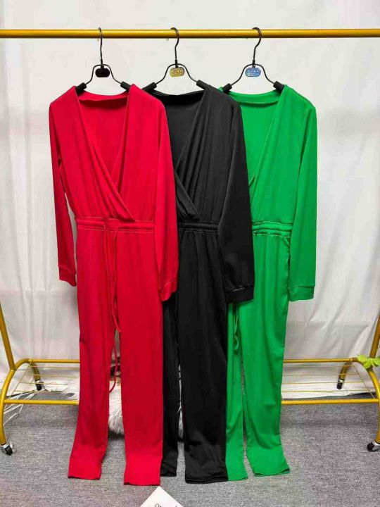 欧美时尚女装纯色V领抽绳时尚秋冬连体衣,整款三色,数量:432件,码数:S-2XL,品质好,拉链式独立包装。