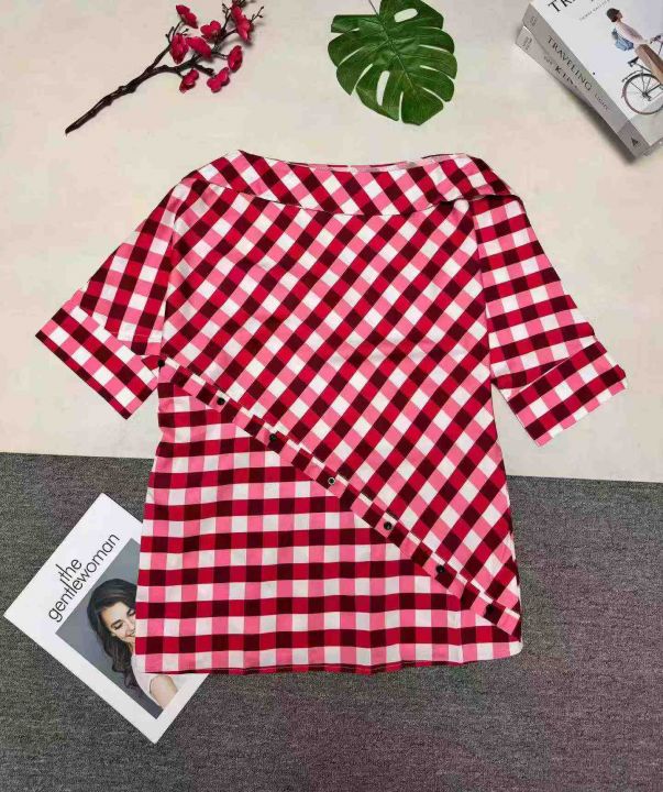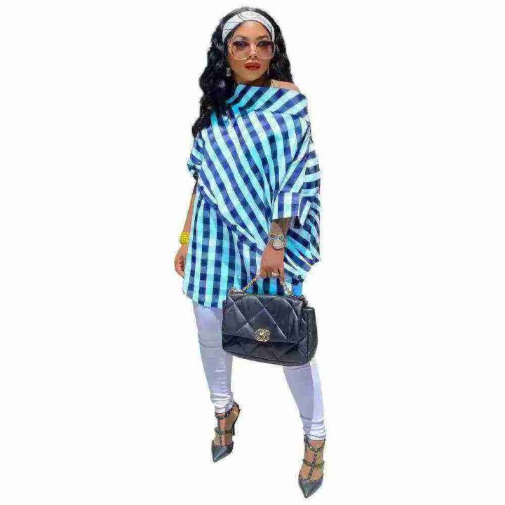 欧美女装秋冬衬衫时尚个性露肩多色格子印花不规则上衣 ,整款三色,数量:407件,码数:S至2X L,品质好,拉链式独立包装。