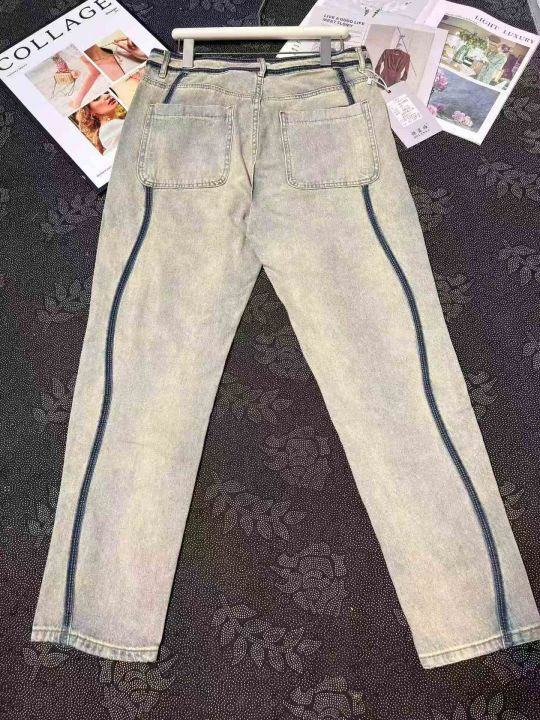 复古男女同款做旧直筒牛仔裤 866件大整款,全清11.8元 分货12.8元,正品独立包装,货品干净,码数:28到34(S到4XL),美式复古设计感明线浅色牛仔裤男女同款高街潮牌直筒垂感长裤。