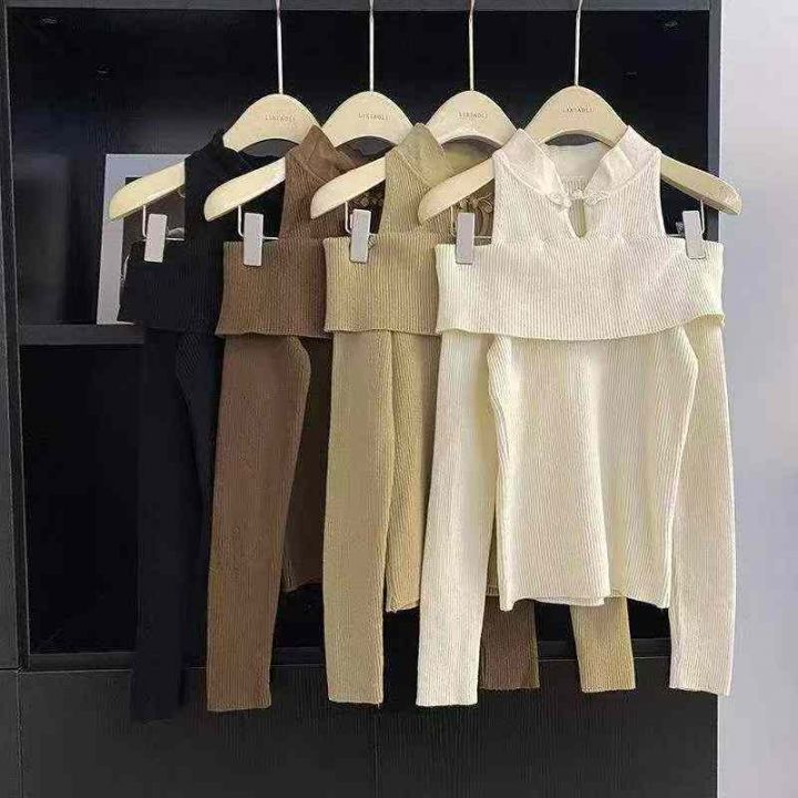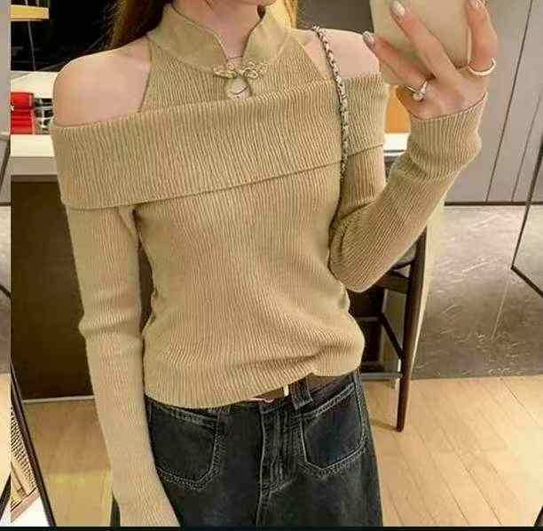 春季新款气质国风新中式挂脖盘扣露肩镂空设计款长袖套头毛衣,独立包装,均码面料柔软舒适弹力大,610件,全清5.9元超低价秒杀!分货加一!